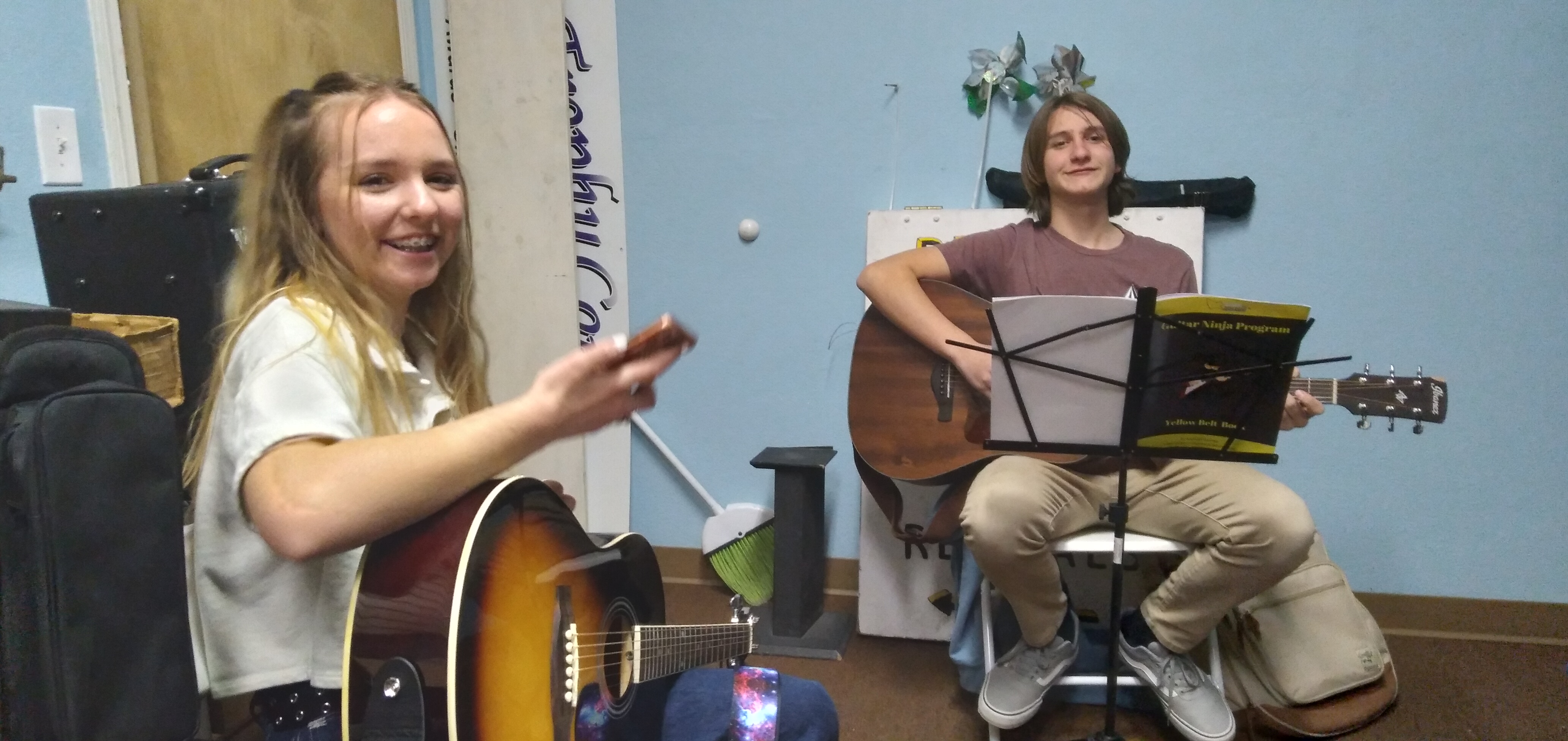 My students have the option to learn strumming the chords of their favorite songs or playing individual notes and scales.